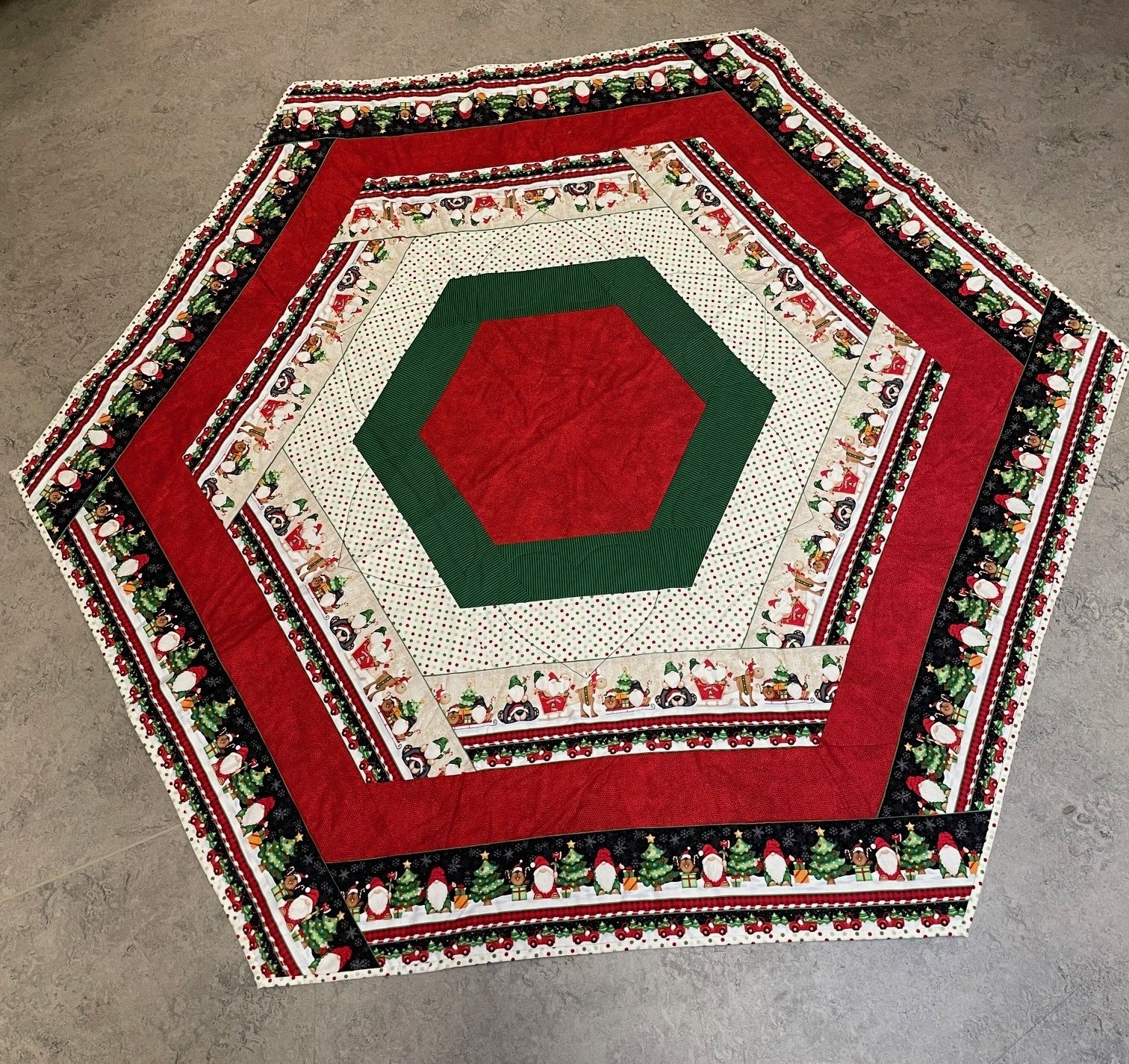 Mønster nr. 063 – 6-kantet juletræstæppe med hjerter eller nisser