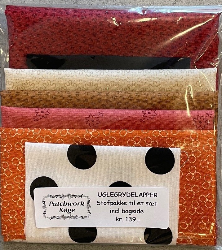 Stofpakke til et sæt uglegrydelapper incl bagside og knapper
