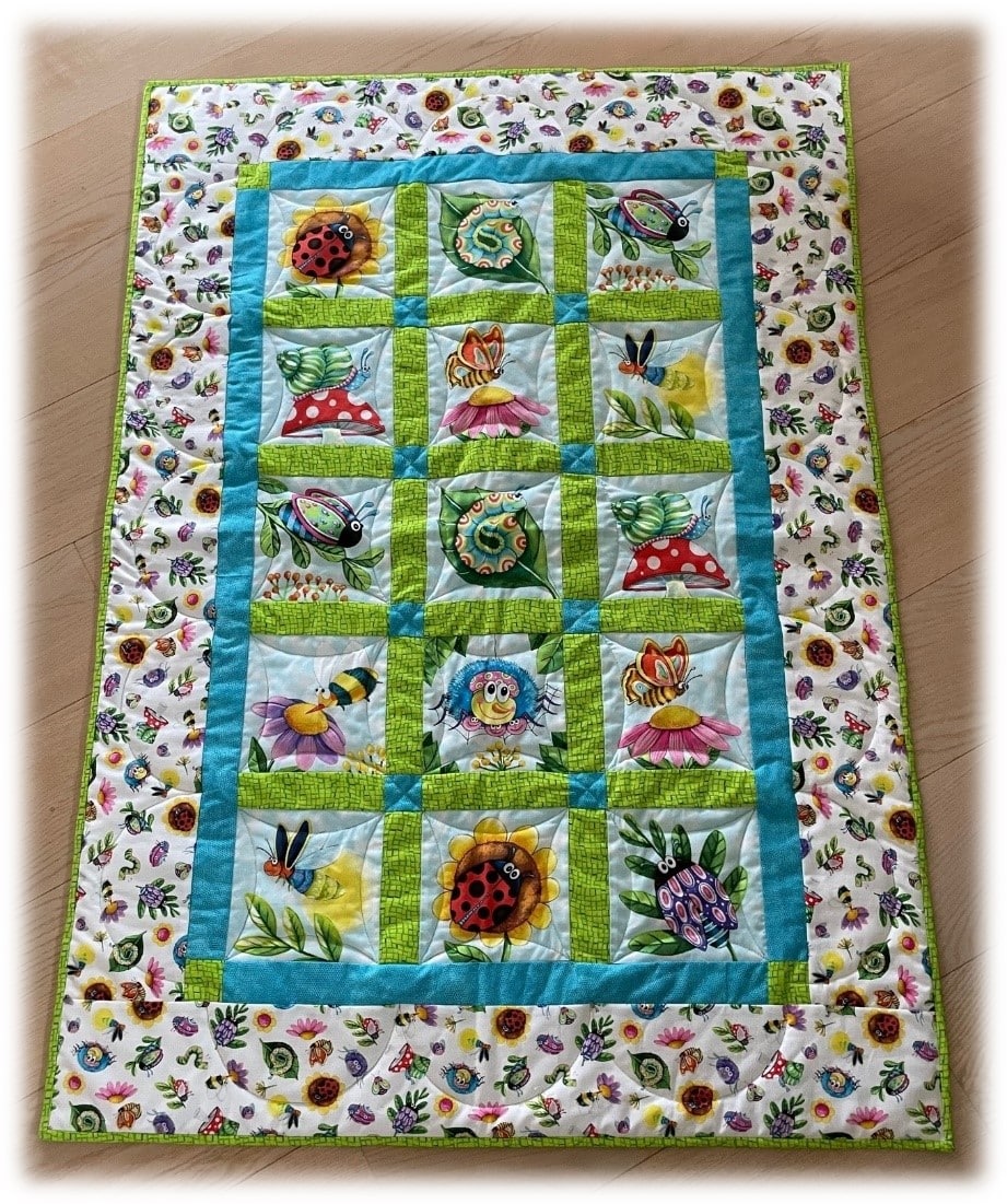 Forside / Webshop / Stofpakker til tæpper / Stofpakke til børnetæppe med glade småkravl